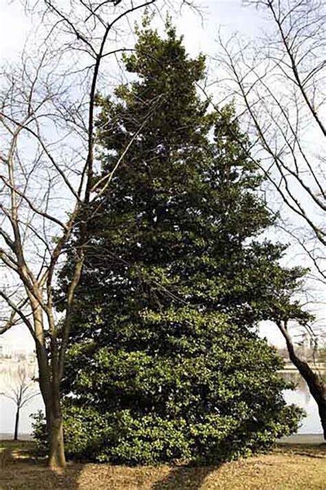 Form: Pyramid-shaped evergreen, often retaining low branches.